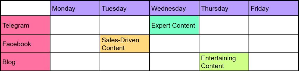 Think of your content plan as a battle strategy — every piece of content should serve a clear purpose: attracting attention, building trust, and driving action. Consistency is key, so map out when and where to publish to maintain your audience’s interest and stay top of mind.