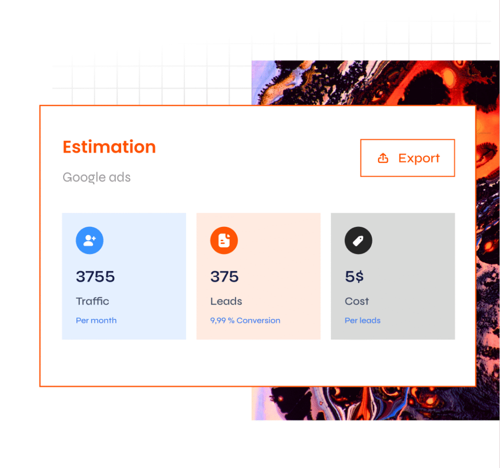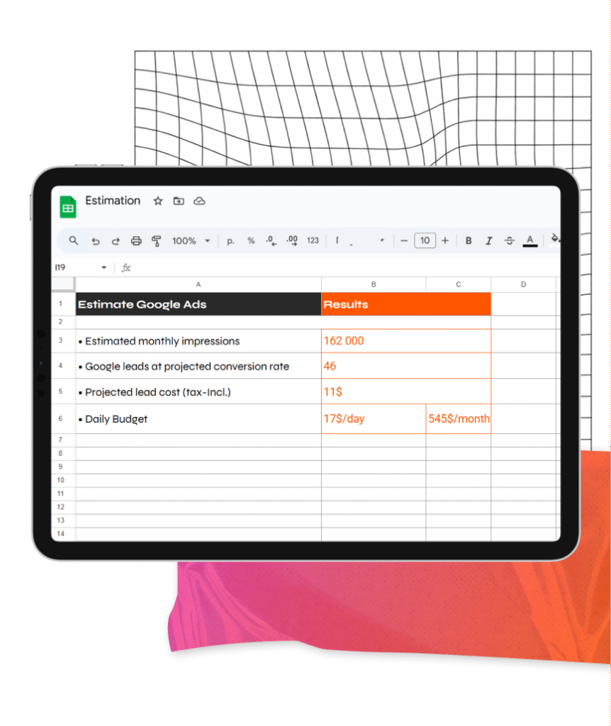 We calculate expected cost per lead, lead volume, and ad budget to help you understand whether Google Ads makes financial sense before launch. Actual results may vary, but our estimations are typically accurate within ±15%.