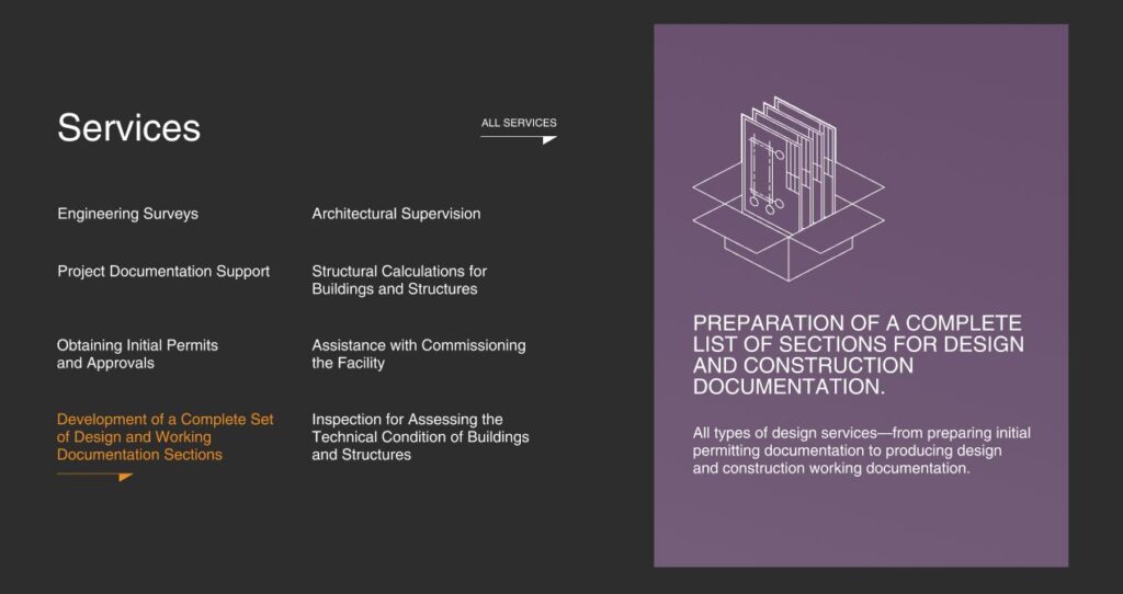 This section should clearly explain to the client what exactly you do. Many users who land on the website don’t fully understand the range of services just from viewing the homepage. Typically, business owners include 3–4 main products or services in this section, each with a brief description.