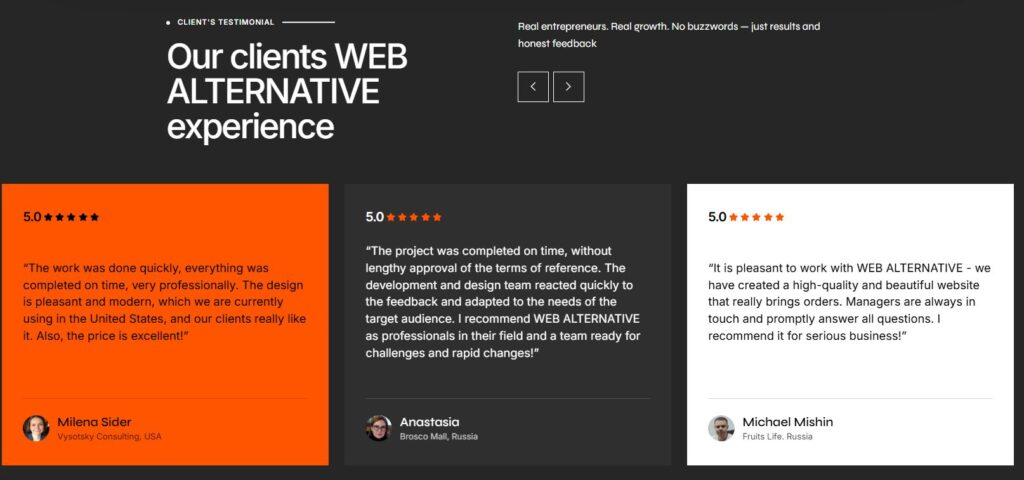 However, if you don’t have famous companies in your client list, don’t worry. You can still display logos of the companies you work with, and this will also increase buyers’ confidence.